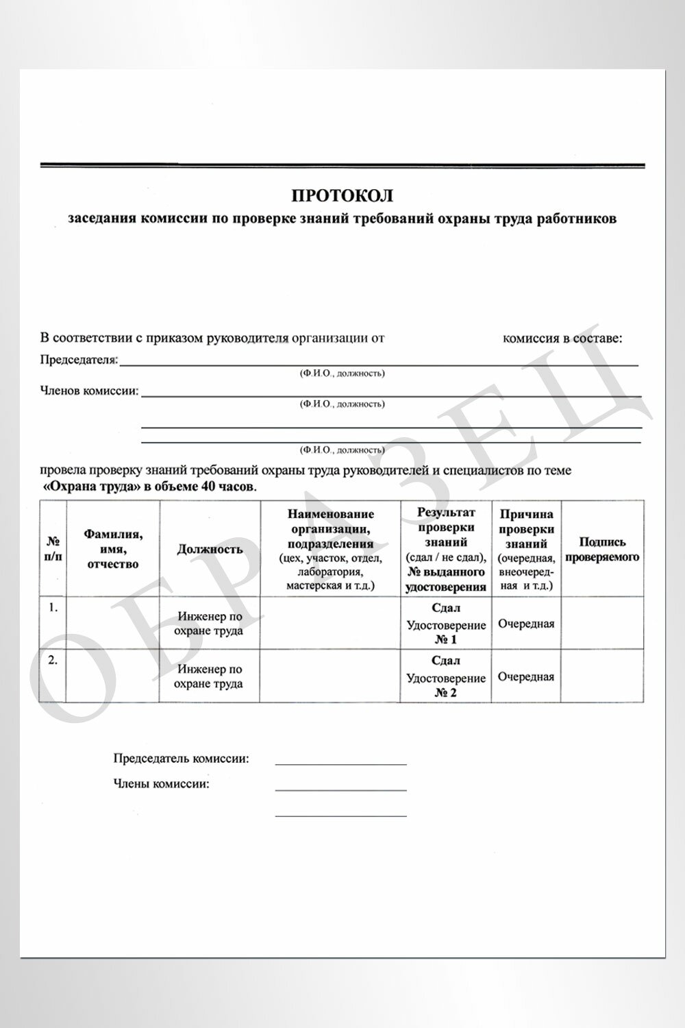 Окончившие обучение получают удостоверение о проверке знаний требований охраны труда установленного образца и протокол заседания комиссии по проверке требований охраны труда. Пример удостоверения по охране труда Вы можете посмотреть здесь.